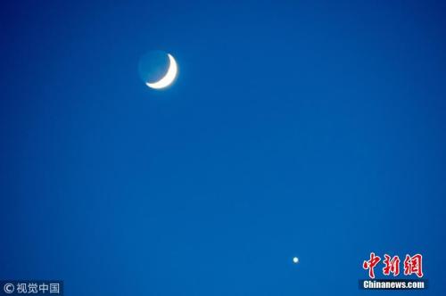 資料圖:行星合月。行星和月亮正好運(yùn)行到同一經(jīng)度上,兩者距離達(dá)到最近,這一天象叫行星合月。一年中,行星合月的現(xiàn)象會(huì)發(fā)生幾十次。