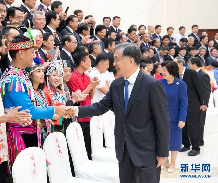 9月8日,第十一屆全國少數(shù)民族傳統(tǒng)體育運(yùn)動會在河南鄭州隆重開幕。中共中央政治局常委、全國政協(xié)主席汪洋出席開幕式。這是開幕式之前,汪洋接見運(yùn)動會組委會全體成員、運(yùn)動員代表和工作人員代表。 新華社記者 王曄 攝