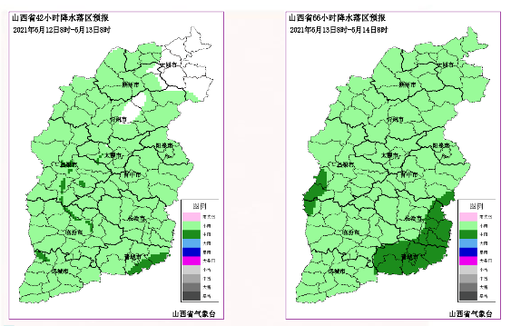 6月13日:全省多云間陰天,大部分地區(qū)有陣雨或雷陣雨,中南部局部地區(qū)有中雨,并伴有短時強降水或雷暴大風(fēng)等強對流天氣。