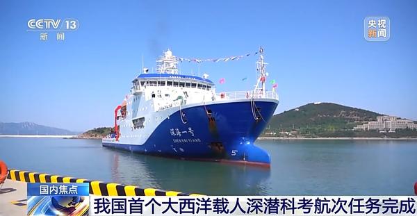 5月28日,搭載“蛟龍?zhí)枴陛d人潛水器的“深海一號”科考船回到位于青島的國家深?;卮a頭,標志著我國首個大西洋載人深潛科考航次任務(wù)圓滿完成。