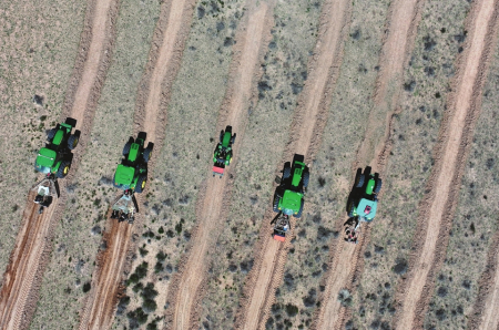 圖為6月15日,牽引播種機(jī)在內(nèi)蒙古鄂爾多斯市杭錦旗防沙治沙項(xiàng)目區(qū)種檸條。