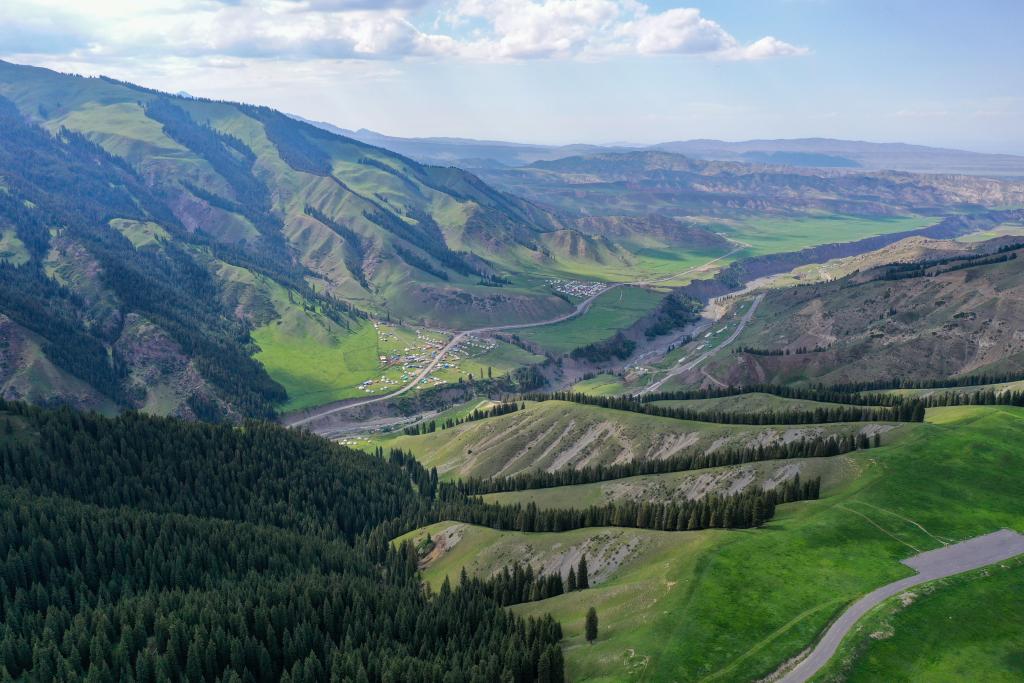 這是6月5日在新疆塔城地區(qū)沙灣市拍攝的鹿角灣景區(qū)(無人機照片)。新華社記者 丁磊 攝