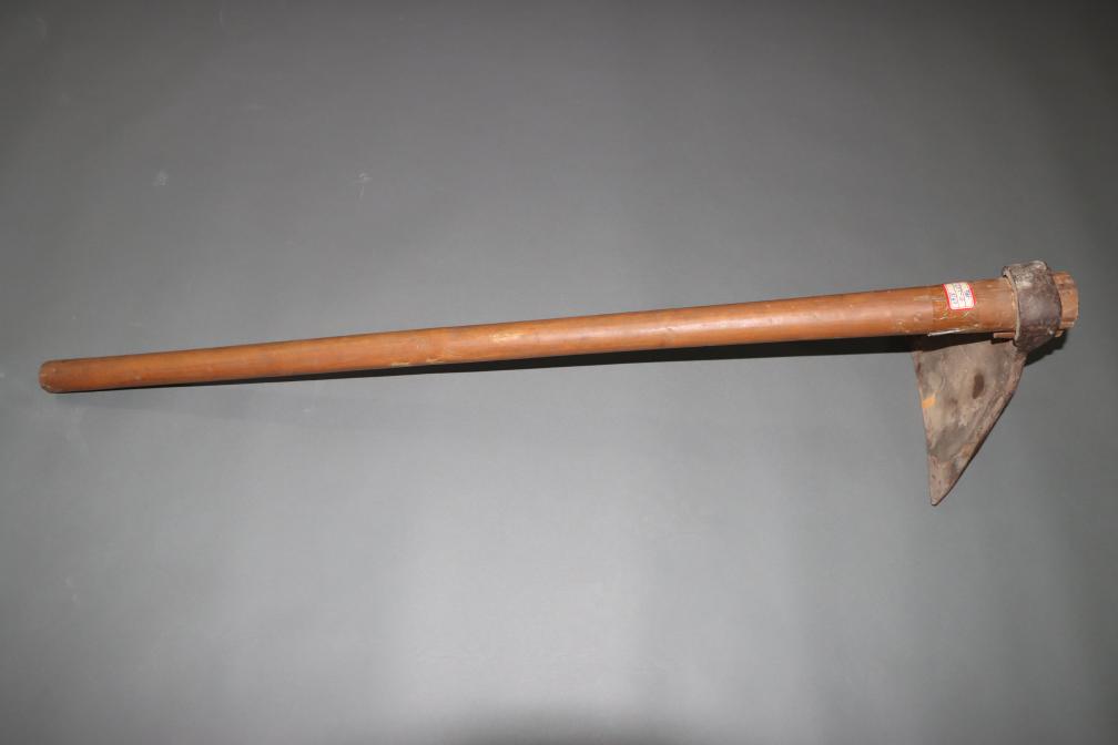 八路軍三五九旅戰(zhàn)士用過的镢頭。延安革命紀念館供圖