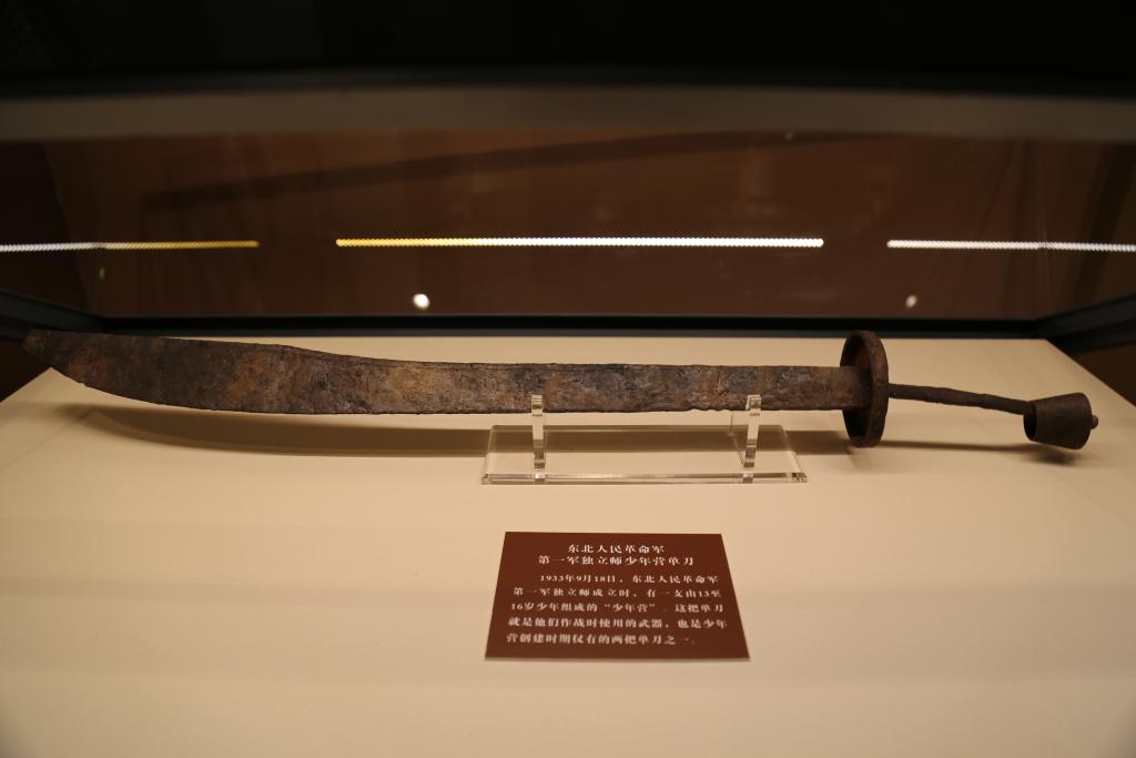 “這把繳獲來的鐵制單刀,是黨創(chuàng)建少年營時為之配備的武器之一。少年營跟隨將士們主要在吉林磐石地區(qū)展開抗日斗爭。”吉林省博物院歷史部副主任王航說。