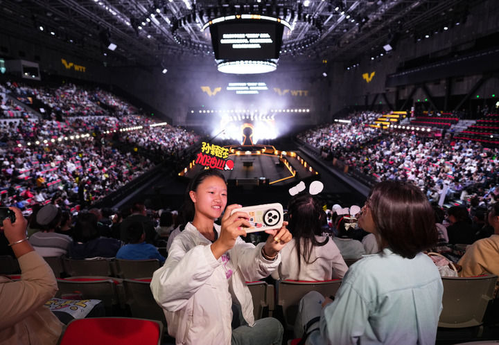 2024年10月3日,觀眾來到首鋼園區(qū)觀看世界乒乓球職業(yè)大聯(lián)盟(WTT)中國(guó)大滿貫賽。新華社記者 張晨霖 攝