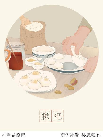 小雪輕揚(yáng),銀裝初上,冬天的景致格外美麗,這一時(shí)節(jié)的民俗活動(dòng)也是豐富多樣的。華東師范大學(xué)民俗學(xué)研究所教授田兆元介紹,比如吃糍粑、腌臘肉、釀小雪酒等?!捌渲?,吃糍粑,是源于春秋戰(zhàn)國時(shí)期的風(fēng)俗,相傳伍子胥在建城時(shí)將糯米蒸熟壓制成磚塊,然后放冷,既可以當(dāng)城墻基石,又能抵御糧荒,后來就成了南方地區(qū)一項(xiàng)民俗?!?/p>
