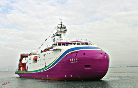 “探索三號”船長約104米,滿載排水量約10000噸,最大航速16節(jié),定員80人,續(xù)航力15000海里。該船設(shè)計實現(xiàn)了冰區(qū)船舶總體設(shè)計技術(shù)、智能控制技術(shù)、低溫精確補(bǔ)償技術(shù)、冰區(qū)載荷與重載荷結(jié)構(gòu)集成設(shè)計等多項關(guān)鍵技術(shù)的自主可控,配備了適應(yīng)冰區(qū)作業(yè)的全國產(chǎn)化科考作業(yè)裝備。創(chuàng)新性融合了包括深潛和極區(qū)在內(nèi)的應(yīng)用場景,建立了船岸協(xié)同的智能船舶管理平臺。