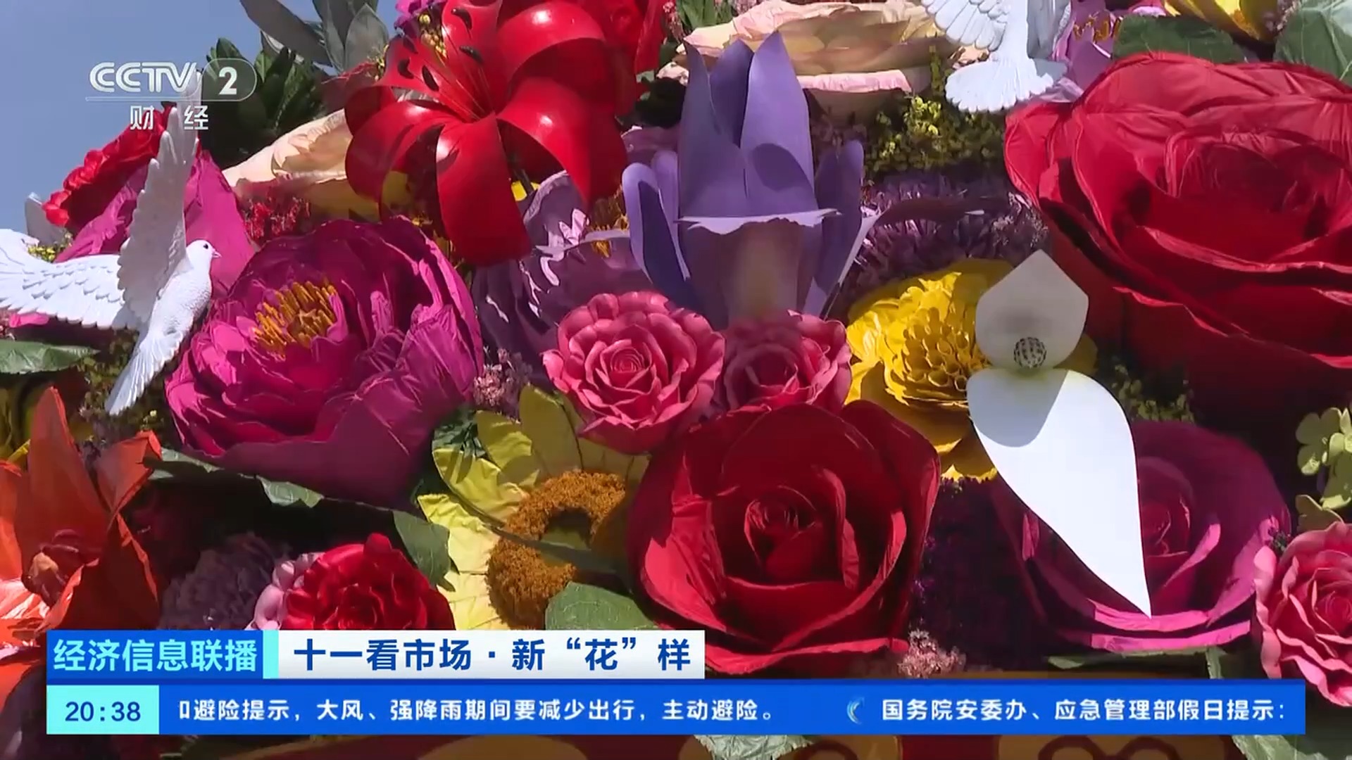 天安門花壇總工程師 張先哲:在天安門廣場我們要抗12級風(fēng),這些大型的花朵要在大風(fēng)中巋然不動,依然要保持它良好的面貌,所以我們用的大型仿真花比較多。今年,這些花朵的大小和色彩做得更加精致自如,比如鳶尾花花瓣用了彩繪,讓它的細(xì)節(jié)、紋理、顏色更加逼真。大花籃里的山丹丹、鴿子花,用的雕塑工藝,是用一些不銹鋼板敲制出來的。