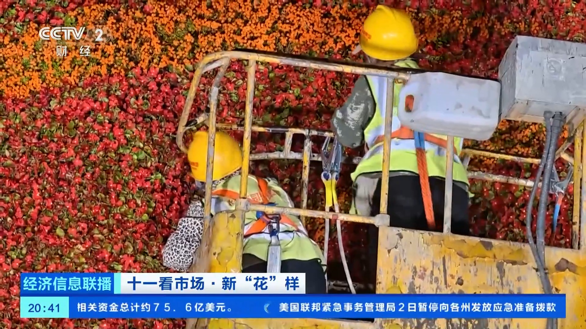 總臺央視記者 王聞聰:今年,在花壇的底部布置了一個直徑達(dá)45米的向日葵圖案,寓意朵朵葵花向太陽。這里面的花沒有那么大,但是,有兩種具有自主知識產(chǎn)權(quán)的花,分別是一串紅“奇跡”和小菊“絢秋星光”。他們是經(jīng)過了近10年時間,雜交選育得到的新優(yōu)品種,這兩種植物都是已經(jīng)能夠大面積應(yīng)用在園林綠化上的品種,在大花籃的花壇應(yīng)用總量近3萬株。