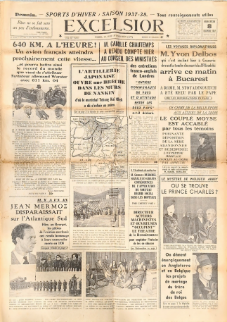 ??1937年12月8日發(fā)行的法國《卓越報》。(侵華日軍南京大屠殺遇難同胞紀(jì)念館供圖)
