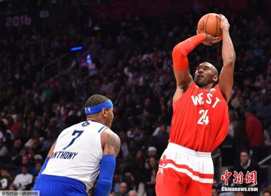 2月15日,2016NBA全明星正賽在多倫多開打,科比·布萊恩特的最后一次全明星賽以勝利而結(jié)束,西部以196-173大勝東部,西部創(chuàng)下了全明星賽得分紀錄,兩隊總得分也刷新了去年創(chuàng)下的紀錄。圖為科比跳投。