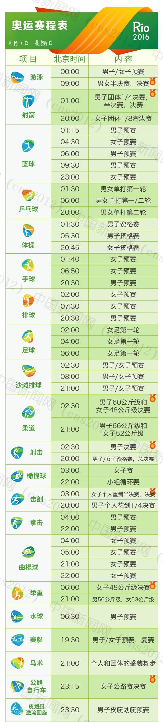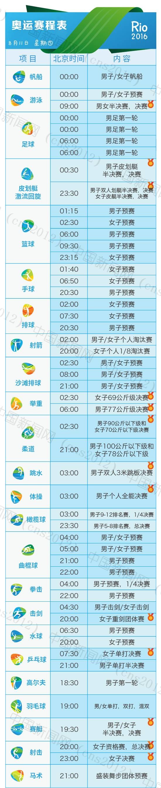 里約奧運(yùn)會完整賽程表