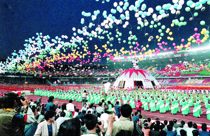 1990年9月22日至10月7日,第十一屆亞運(yùn)會在北京舉行。這是中國首次舉辦國際綜合性運(yùn)動會。圖為開幕式現(xiàn)場。 新華社發(fā)