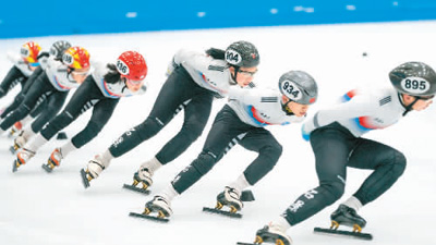 2月11日,在北京市昌平區(qū)世紀(jì)星國(guó)際冰雪體育中心,參加集訓(xùn)的小隊(duì)員們進(jìn)行短道速滑訓(xùn)練。新華社記者 才 揚(yáng)攝