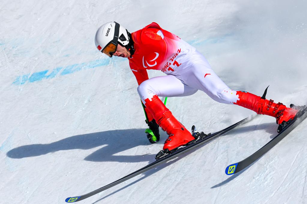3月6日,中國選手梁景怡在比賽中。新華社記者江漢攝 在6日的殘奧高山滑雪和殘奧越野滑雪賽場上,中國選手迎來了集體爆發(fā)。梁景怡、張夢秋分別摘得殘奧高山滑雪男、女超級大回轉(zhuǎn)(站姿)金牌,鄭鵬和楊洪瓊則包攬了殘奧越野滑雪男、女長距離(坐姿)冠軍。本屆賽事之前,中國運動員從未在冬殘奧雪上項目奪得過獎牌,因此每一枚金牌的背后都代表著一次突破。