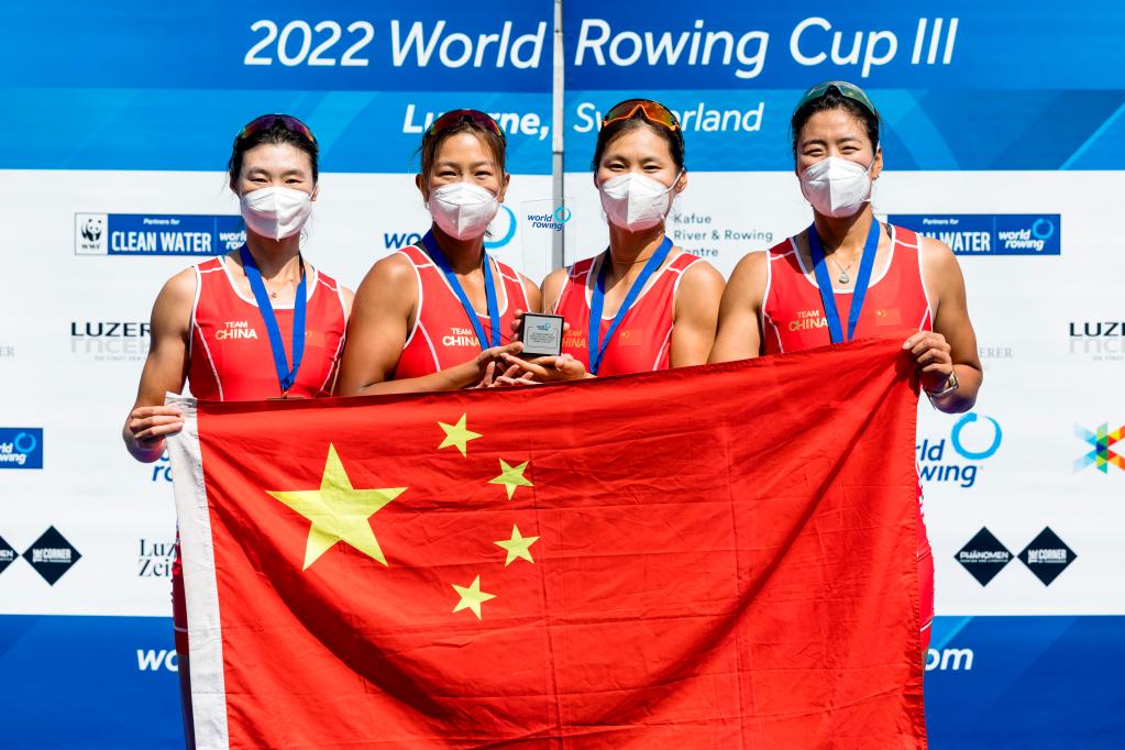 在盧塞恩站女子四人雙槳決賽中,由三名奧運冠軍陳云霞、呂揚、崔曉桐與小將魯詩雨組成的中國隊從開賽就確立了領先優(yōu)勢,最終以6分14秒68的成績奪冠。在此前的塞爾維亞貝爾格萊德站和波蘭波茲南站比賽中,中國隊分獲該項目銀牌和金牌,最終憑借積分優(yōu)勢獲得年度總冠軍。