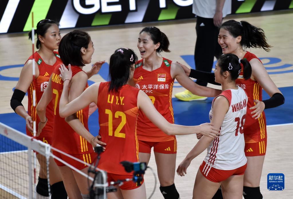 6月13日,中國(guó)隊(duì)球員慶祝得分。新華社記者盧炳輝攝