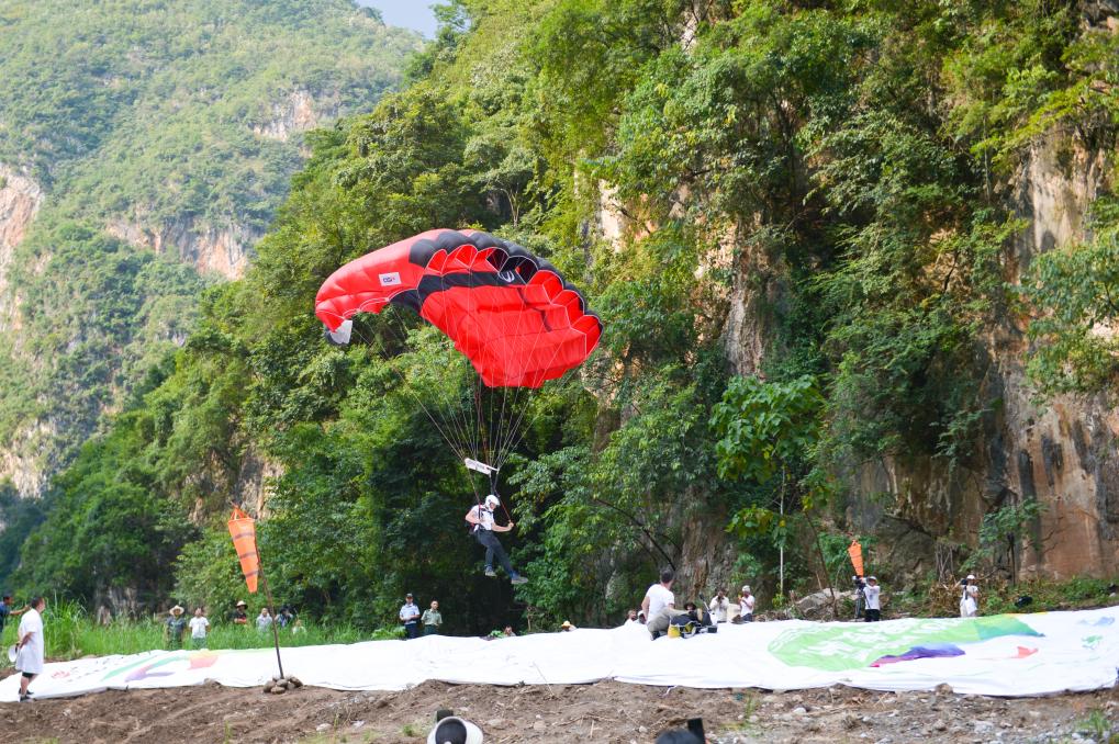 新華社貴陽9月6日電(記者駱飛、吳思)6日上午,極限運(yùn)動員們相繼從北盤江大橋上飛躍而下,拉開了在貴州省六盤水市舉行的2023國際高橋極限運(yùn)動邀請賽世界第一高橋站低空跳傘角逐的序幕。