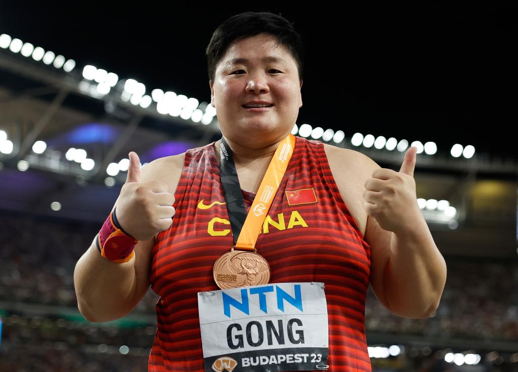 8月26日,中國選手鞏立姣在決賽后慶祝。當(dāng)日,在匈牙利布達(dá)佩斯舉行的2023世界田徑錦標(biāo)賽女子鉛球決賽中,中國選手鞏立姣以19米69的成績獲得季軍。新華社記者王麗莉攝 在中國代表團(tuán)的名單里,還有不少老將的名字。34歲的呂會會,依然堅守在女子標(biāo)槍的賽場上;33歲的王珊珊,將帶領(lǐng)中國女足再一次爭奪亞洲冠軍;30歲的謝震業(yè),將要在蘇炳添缺陣的情況下,挑起男子短跑的大梁;29歲的汪順,也即將成為亞運“四朝元老”。他們不僅會在各自的項目中沖擊更好的成績,也會用經(jīng)驗幫助年輕運動員們更好地調(diào)整心態(tài)。 冠軍再出發(fā) 亞運會一直以來都被稱作奧運會前的“中考”。本屆杭州亞運會距離明年的巴黎奧運會開幕已經(jīng)不足一年。不少奧運冠軍都將以飽滿的狀態(tài)出征亞運,為奧運練兵。