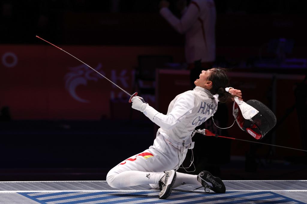 25日,杭州亞運(yùn)會(huì)女花個(gè)人決賽中,隨著黃芊芊刺中制勝一劍,顯示器上的比分定格在15:8。這位21歲的中國(guó)女花新星,為中國(guó)擊劍隊(duì)斬獲本屆亞運(yùn)會(huì)首金。
