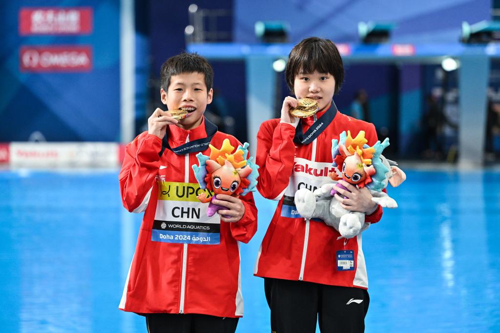 新華社多哈2月3日電(記者劉旸、周欣、孫哲)3日,在2024多哈游泳世錦賽第二個比賽日中,中國跳水組合張家齊/黃建杰奪得混雙10米臺冠軍,花樣游泳女單技術自選決賽中,徐匯妍摘得銅牌。
