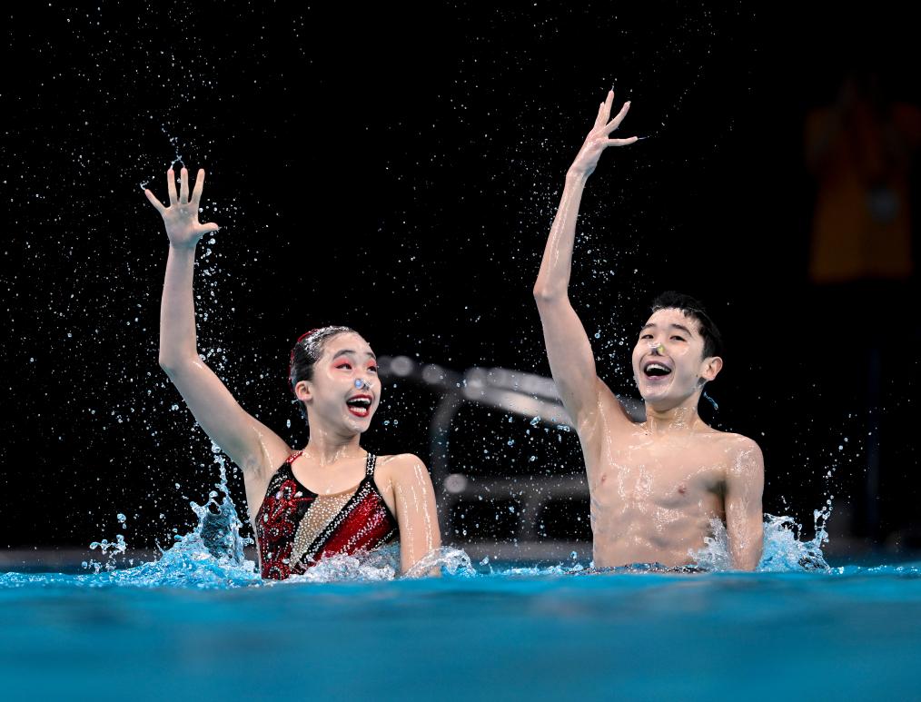 意大利隊(duì)、哈薩克斯坦隊(duì)和西班牙隊(duì)分獲混合自由自選項(xiàng)目前三名。中國(guó)隊(duì)顧嘉虞/郭牧兮位列第四?!敖裉彀l(fā)揮出了訓(xùn)練水平,我覺得自己需要增強(qiáng)力量,跟其他男選手還有差距,要繼續(xù)努力?!惫临庹f。