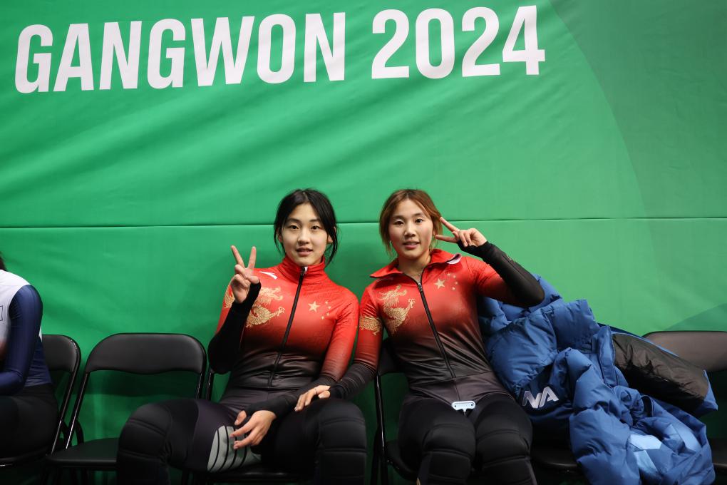 短道速滑小將楊婧茹和李金恣配合默契