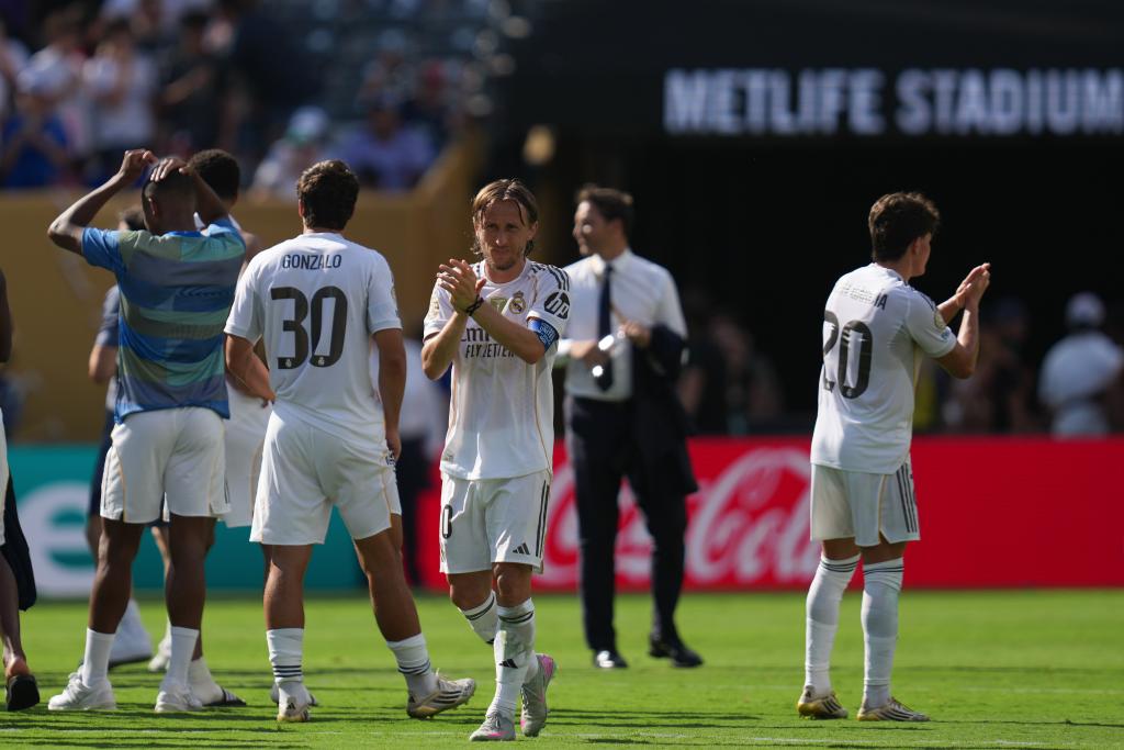 7月9日,在2025年國(guó)際足聯(lián)俱樂(lè)部世界杯(世俱杯)半決賽后,莫德里奇(中)在向觀眾致意,這是莫德里奇效力皇馬的最后一場(chǎng)比賽。新華社記者 黃宗治 攝