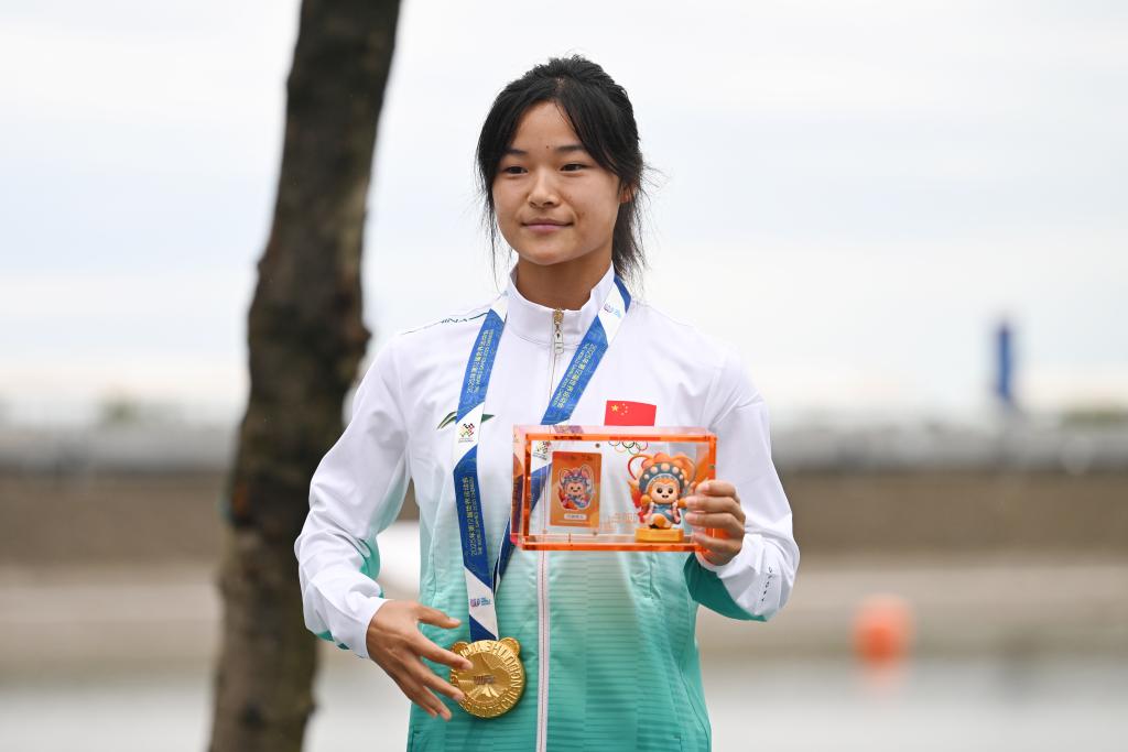 8月10日,中國選手徐露在頒獎儀式上。新華社記者 陳振海 攝