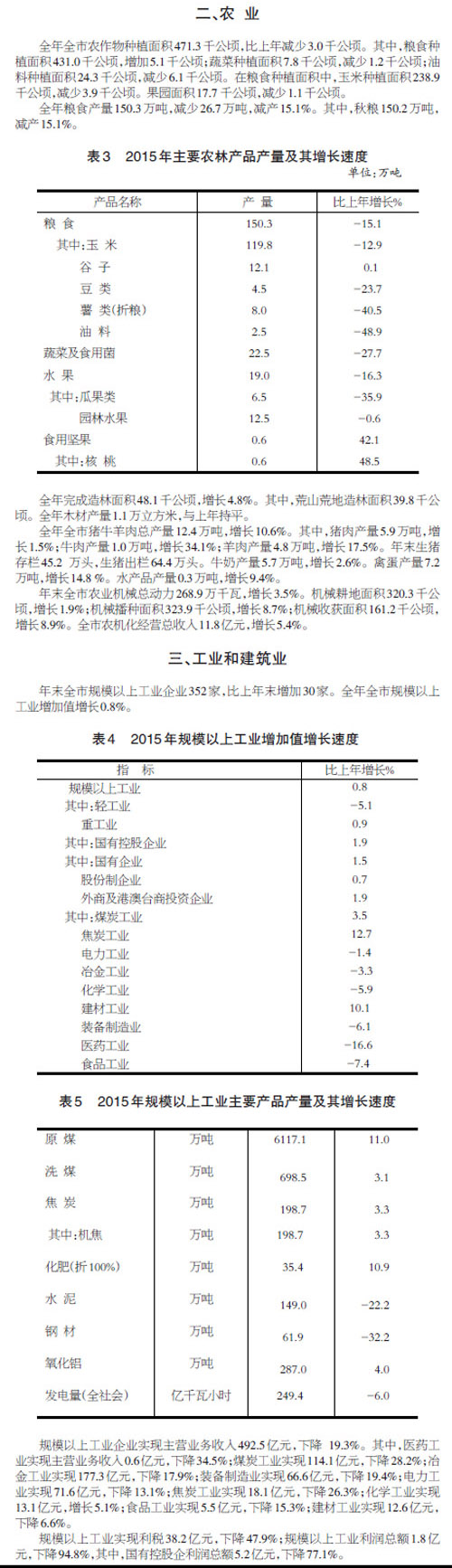 忻州市2015年國民經(jīng)濟(jì)和社會發(fā)展統(tǒng)計公報