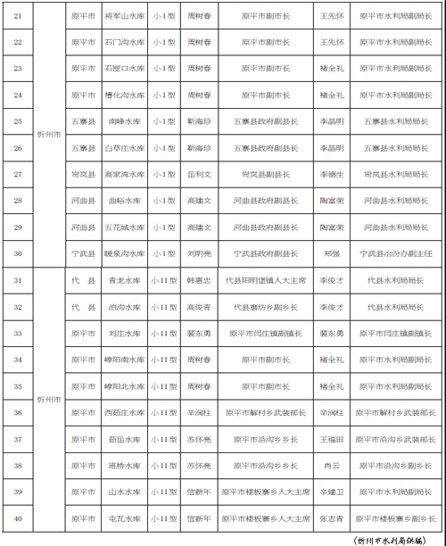 2016 年忻州市小型水庫(kù)大壩安全責(zé)任人