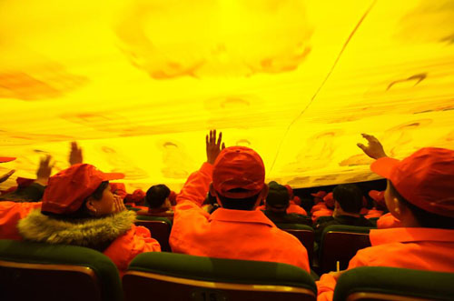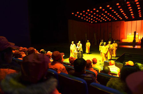 4月13日晚,五臺山風(fēng)景名勝區(qū)近200名環(huán)衛(wèi)工人成為《又見五臺山》大型情境體驗劇場風(fēng)鈴宮內(nèi)的座上賓。五一將至,為了表達對五臺山景區(qū)美容師們——環(huán)衛(wèi)工人的感恩之情,又見五臺山劇場免費邀請200多名景區(qū)一線環(huán)衛(wèi)工人免費觀看節(jié)目,為大家送上了一份精神大餐。