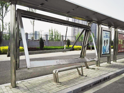 見到記者拍照,一位巡邏民警說,這個站牌是前兩天被車撞壞的,因為是新路,公交站牌還未投入使用。這條道路行人車輛稀少,肇事車輛已不知去向,也沒有目擊者。一位開車路過此處的司機說,這么漂亮的站牌,被車撞成這樣,看著讓人心疼,希望有關(guān)部門加強監(jiān)管,嚴格懲罰力度。同樣,廣大市民也應積極行動起來,愛護公共設施,維護候車環(huán)境。圖為云中北路慘遭破壞的公交站牌(張志遠 孫明)