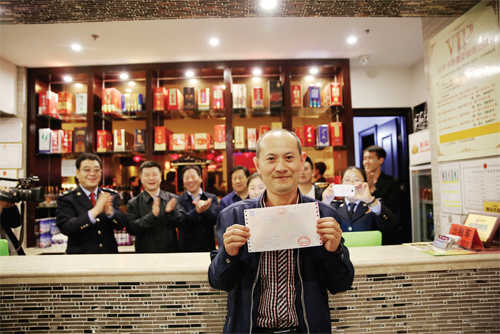 原平市王府甲魚城負(fù)責(zé)人展示開出的“1 號(hào)票”
