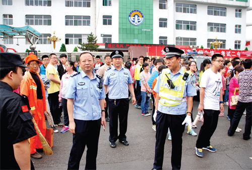 市公安局副局長、交警支隊長袁小波在高考現(xiàn)場指揮調(diào)度
