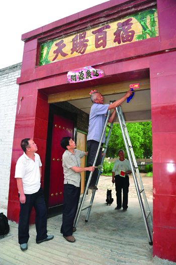 圖為陽明堡鎮(zhèn)東關(guān)村老黨員賈治安亮出“共產(chǎn)黨員戶”標(biāo)牌。