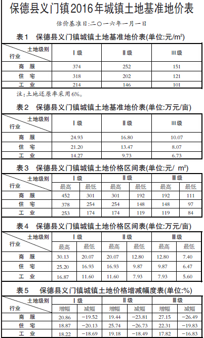 義門、橋頭、楊家灣三鎮(zhèn)基準地價更新工作已經市國土資源局組織有關人員檢查驗收,根據(jù)《忻州市國土資源局關于保德縣橋頭、義門、楊家灣三鎮(zhèn)鎮(zhèn)區(qū)土地定級與估價調整更新成果的批復》,經縣政府研究決定,同意將義門、橋頭、楊家灣三鎮(zhèn)基準地價予以公布實施。