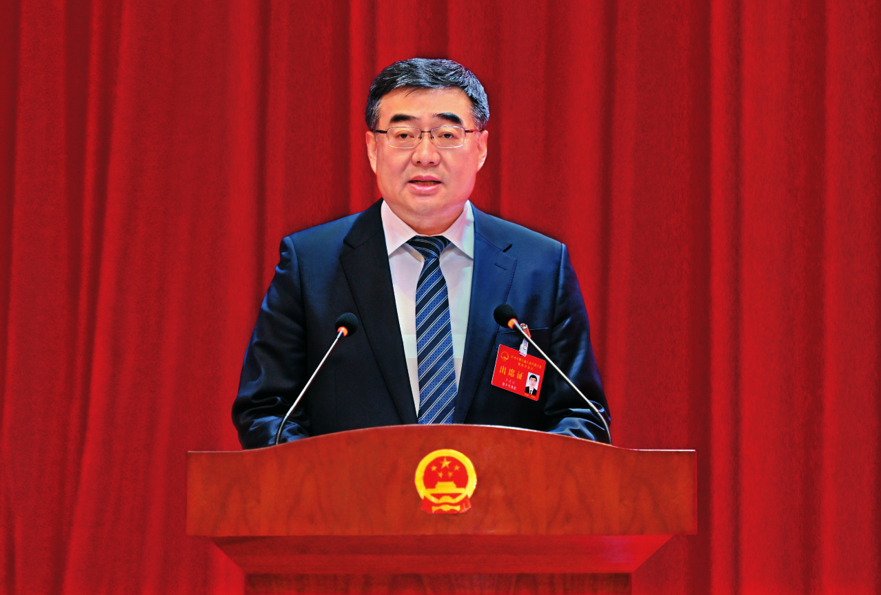 李建國在市五屆人大四次會議上 作政府工作報告。本報記者 馮曉磊攝