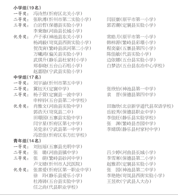 忻州市“中華魂”主題教育讀書活動演講比賽獲獎名單