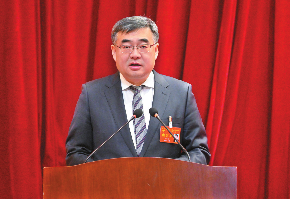 李建國(guó)在市五屆人大五次會(huì)議上作政府工作報(bào)告。 本報(bào)記者 馮曉磊攝