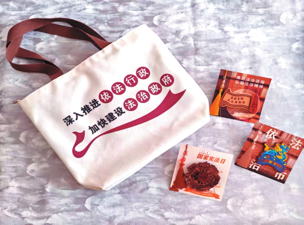 行走的法治與非遺宣傳:帆布包上的流動風景線。除木雕冰箱貼外,帆布袋成為“普法+非遺”系列文創(chuàng)產(chǎn)品的一大亮點。雙面印有宣傳圖案,正面“依法行政”“法治政府”主題鮮明,背面則是忻州非遺與景點交織圖,靜樂剪紙、撓羊賽、北路梆子等非遺元素與忻州古城、五臺山等景點相互輝映,構(gòu)成生動文化圖卷,讓群眾沉浸于法治“文化味”與非遺“煙火氣”。