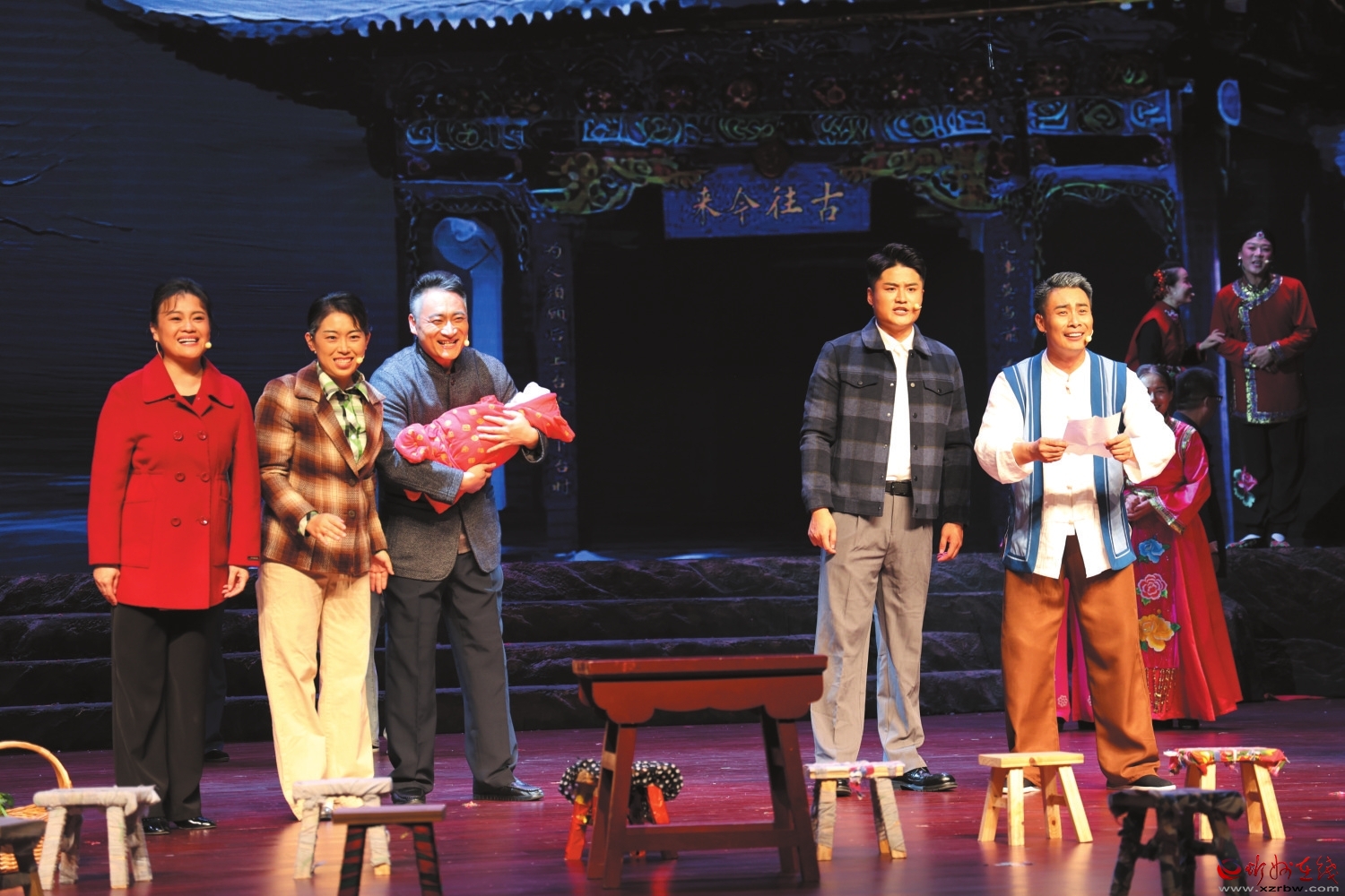 大幕開啟,濃郁的地域風情撲面而來。河曲民歌、二人臺和河曲河燈會——三項國家級非物質文化遺產的藝術精華在舞臺上交相輝映,煥發(fā)出耀眼光芒?;趾甑奈枧_布景與極具感染力的音樂,瞬間把觀眾帶入河曲民歌鼎盛的年代。隨著劇情跌宕,觀眾沉浸于河曲兒女守護文化遺產的動人故事,感受那份融入血脈的執(zhí)著精神。