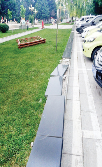 原平市市政府門前綠化帶西邊,草坪旁的地磚已損壞,急需修理,望相關部門關注。(一網(wǎng)友攝于7月6日)