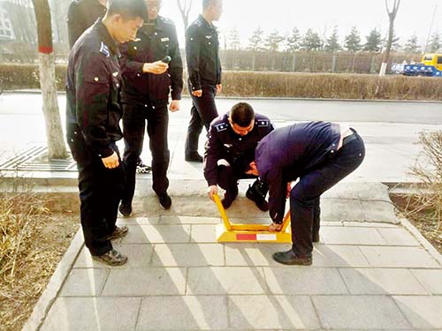 事后,該隊根據(jù)城市道路管理相關(guān)法律法規(guī),依法對設(shè)置的10個地鎖和11個隔離欄進行拆除,還路于民,贏得了廣大市民的贊許。下圖為執(zhí)法人員正在拆除私自安裝的地鎖。(張志遠 董子源)