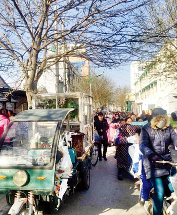 忻州實驗小學(xué)所在的巷子本就狹窄,每天上下學(xué)高峰時期,有許多小商小販占道經(jīng)營,讓這條街道變得更加擁堵,自行車都很難通行。望相關(guān)部門管理整治。一網(wǎng)友攝