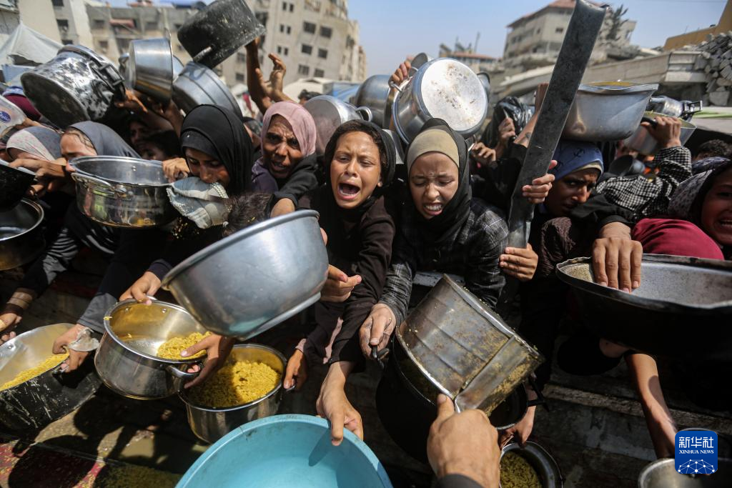 8月10日,民眾在加沙城領(lǐng)取免費(fèi)食物。新華社發(fā)(里澤克·阿卜杜勒賈瓦德攝)