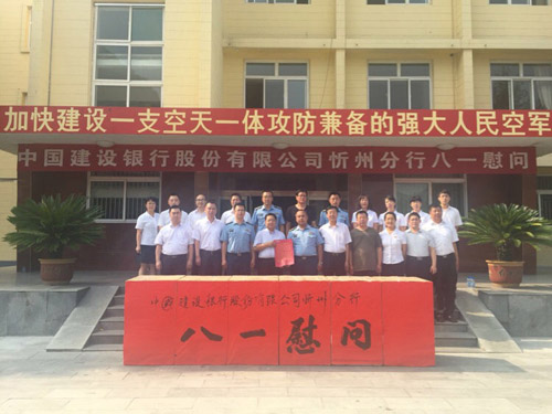 7月31日,八一建軍節(jié)來(lái)臨之際,忻州分行劉昱星行長(zhǎng)攜紀(jì)委書記陳慶鵬、副行長(zhǎng)趙彤、高級(jí)客戶經(jīng)理王平、副行長(zhǎng)郝翀平及部分部門負(fù)責(zé)人前往空軍某部開展“軍銀攜手,共建同行”八一慰問(wèn)活動(dòng),并遞交慰問(wèn)信和慰問(wèn)品。