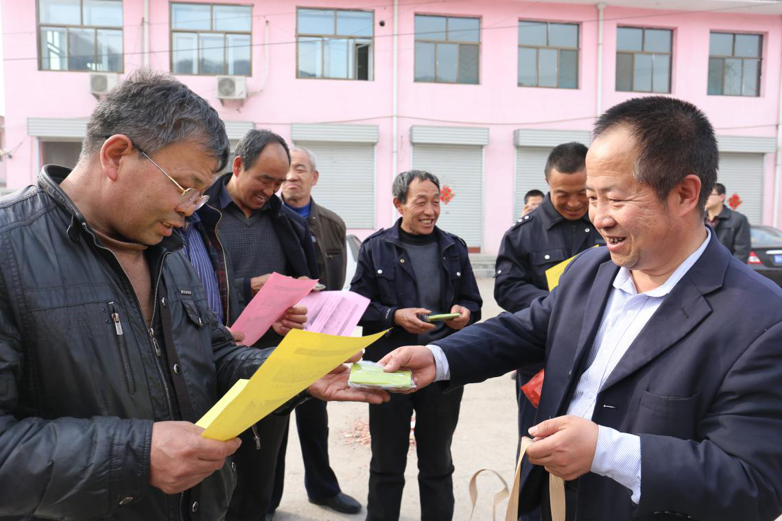 駐地郵局領(lǐng)導(dǎo)向村民派發(fā)指甲刀、鑰匙扣、卡包等紀念品。劉志剛 攝