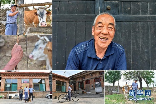 尚彩良,男,1949年出生,山西省長治市潞城區(qū)比干嶺村人,家傳的養(yǎng)殖技術(shù)讓他從小不愁吃穿,但突如其來的患病導(dǎo)致他生活陷入困難。2015年開始,他享受貧困戶養(yǎng)殖補(bǔ)貼、種植補(bǔ)貼和醫(yī)療補(bǔ)貼,2016年在當(dāng)?shù)卣膸椭伦∵M(jìn)了新房。 右上:尚彩良肖像;左上:尚彩良準(zhǔn)備去放牛;左中:尚彩良在放牛;左下:尚彩良(中)和家人在新院子里合影;下中:尚彩良推著自行車走進(jìn)院子;下右:尚彩良在去放牛的路上(拼版照片,6月12日攝)。 地處晉東南的山西省長治市,位于由太行山、太岳山環(huán)繞而成的上黨盆地中。在群山中、崖壁上,許多村莊自然條件惡劣,基礎(chǔ)設(shè)施落后,脫貧致富是大山深處人們的迫切心愿。 近年來,一場(chǎng)場(chǎng)脫貧攻堅(jiān)戰(zhàn),在一個(gè)個(gè)深山村打響。政府全力探索脫貧路徑的同時(shí),山區(qū)百姓因地制宜,靠自己的雙手和智慧走上致富路,交出了一份扎實(shí)的脫貧答卷。 記者在太行山、太岳山一路尋訪,記錄下多位70歲老人的生活。這些共和國的同齡人,親歷了山鄉(xiāng)的巨變,見證著長治山區(qū)脫貧攻堅(jiān)偉大工程的一步步推進(jìn)。 新華社記者 曹陽 攝