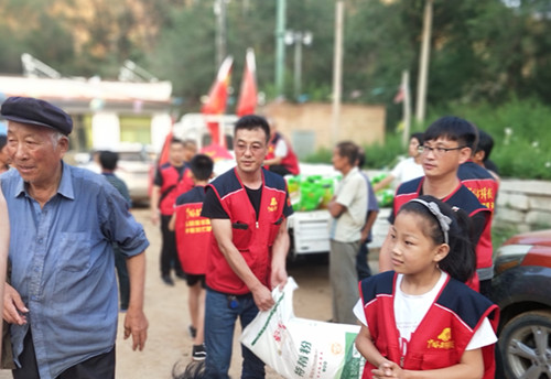 在發(fā)放現(xiàn)場,受災群眾感受到了志愿者的關愛,看在眼里,暖在心里,整個村里呈現(xiàn)出一片溫馨快樂的氛圍。